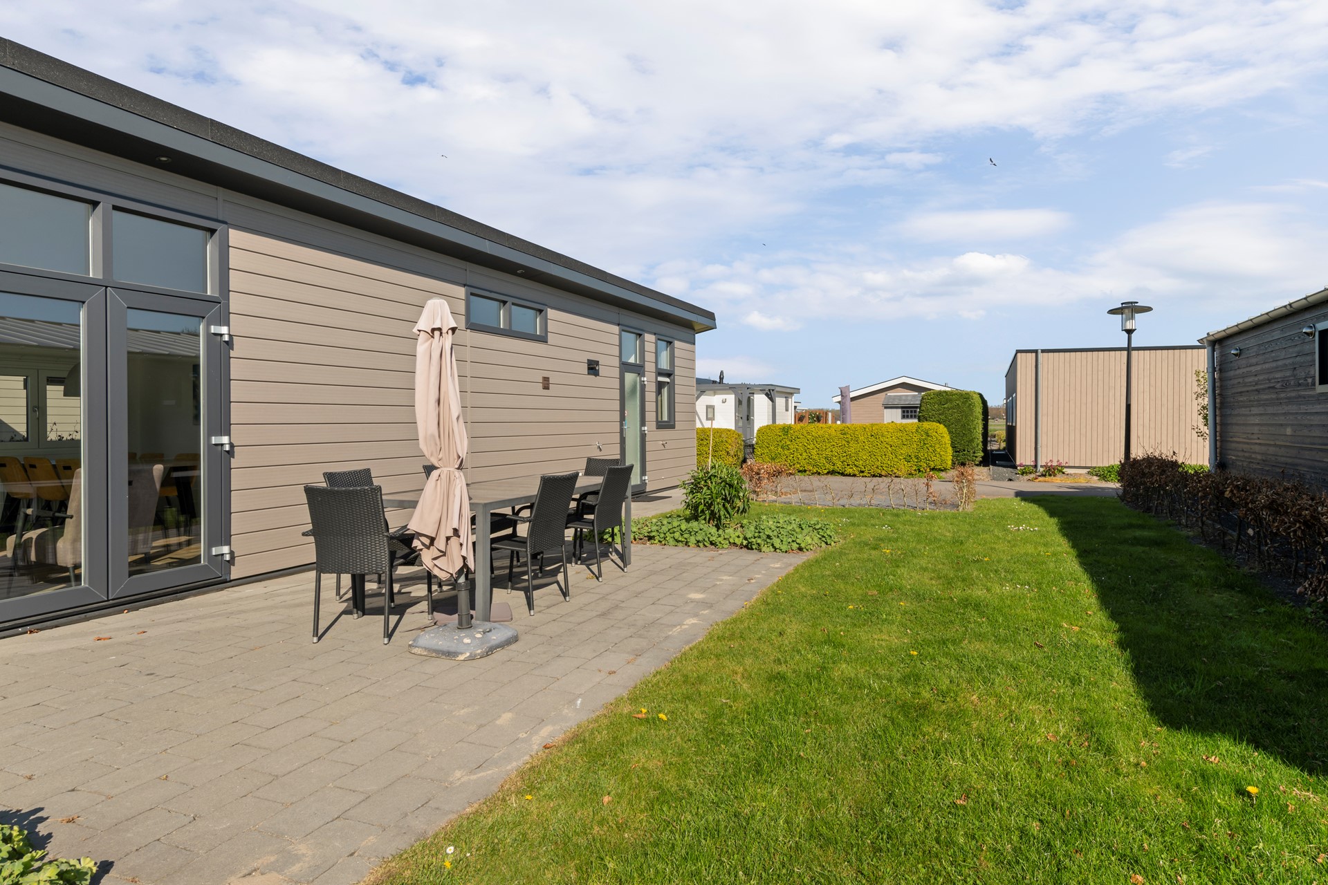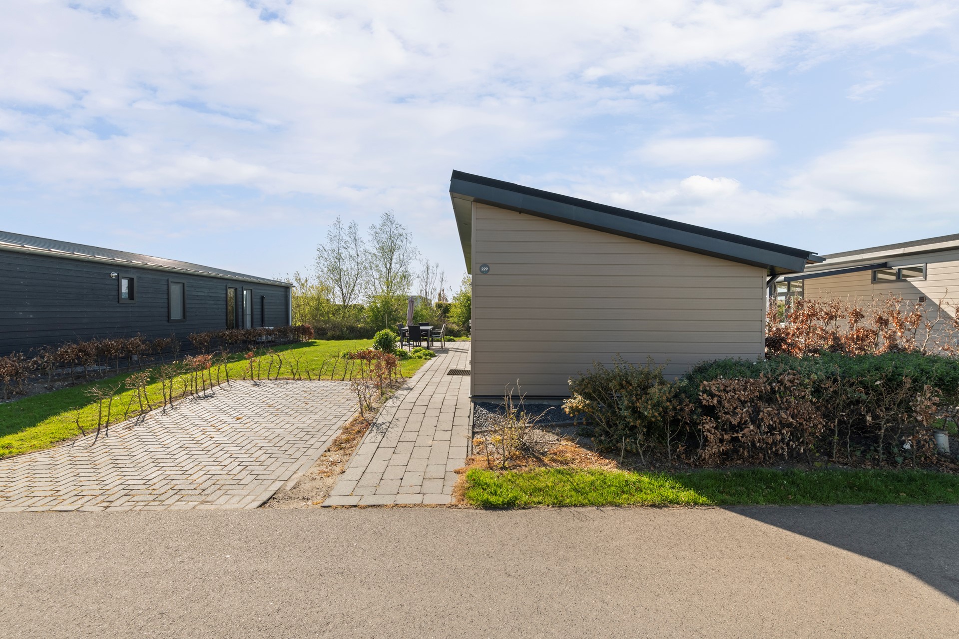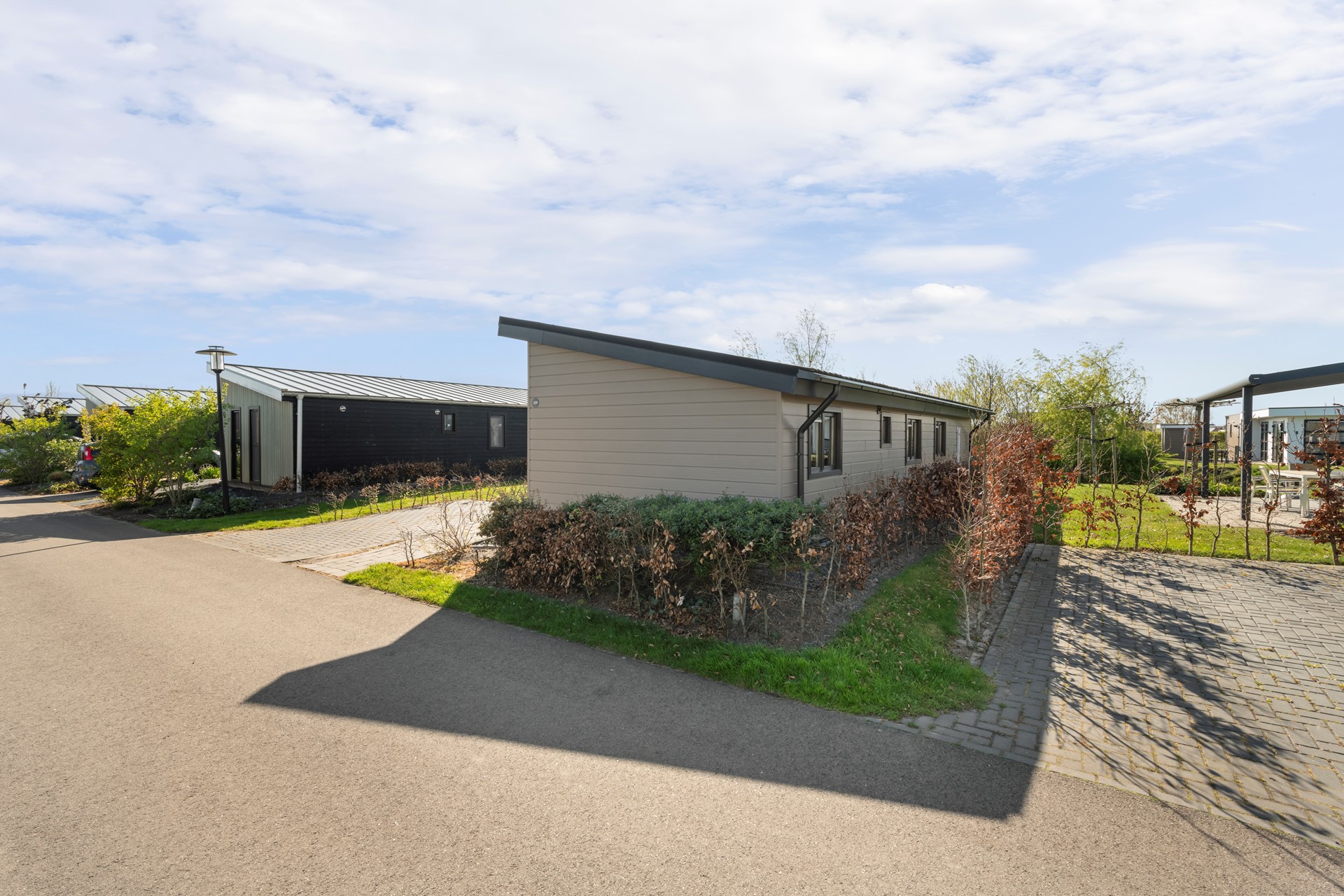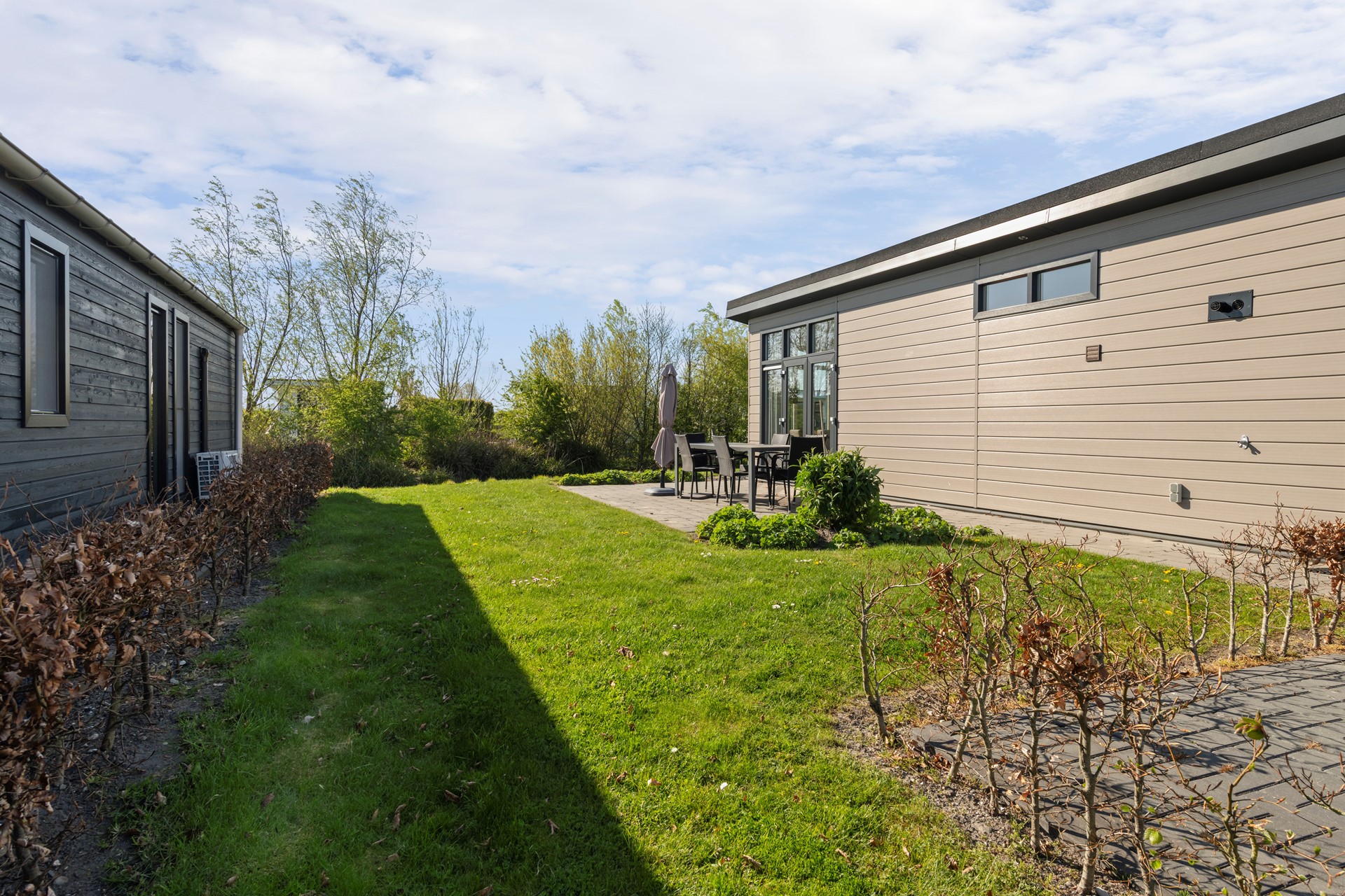 Het perceel is onderhoudsarm aangelegd en voorzien van een heerlijk terras met ruimte voor een comfortabele tuinset, waar u optimaal kunt genieten van het buitenleven. De tuin is daarnaast uitgerust met een zonnescherm en een sproei-installatie, wat zorgt voor extra comfort en gemak in het onderhoud. De woning is prachtig gelegen aan een waterpartij, wat zorgt voor een echt vakantiegevoel en een rustige, ontspannen sfeer. Daarnaast beschikt de woning over een eigen parkeerplaats direct bij de woning.