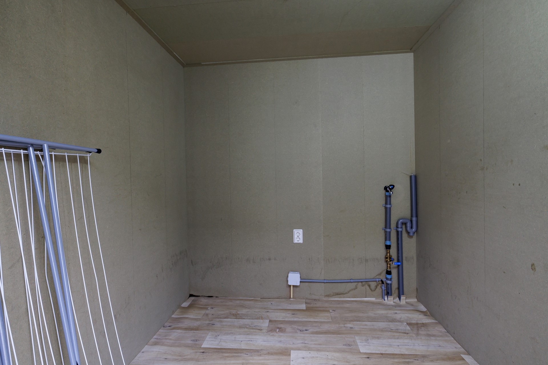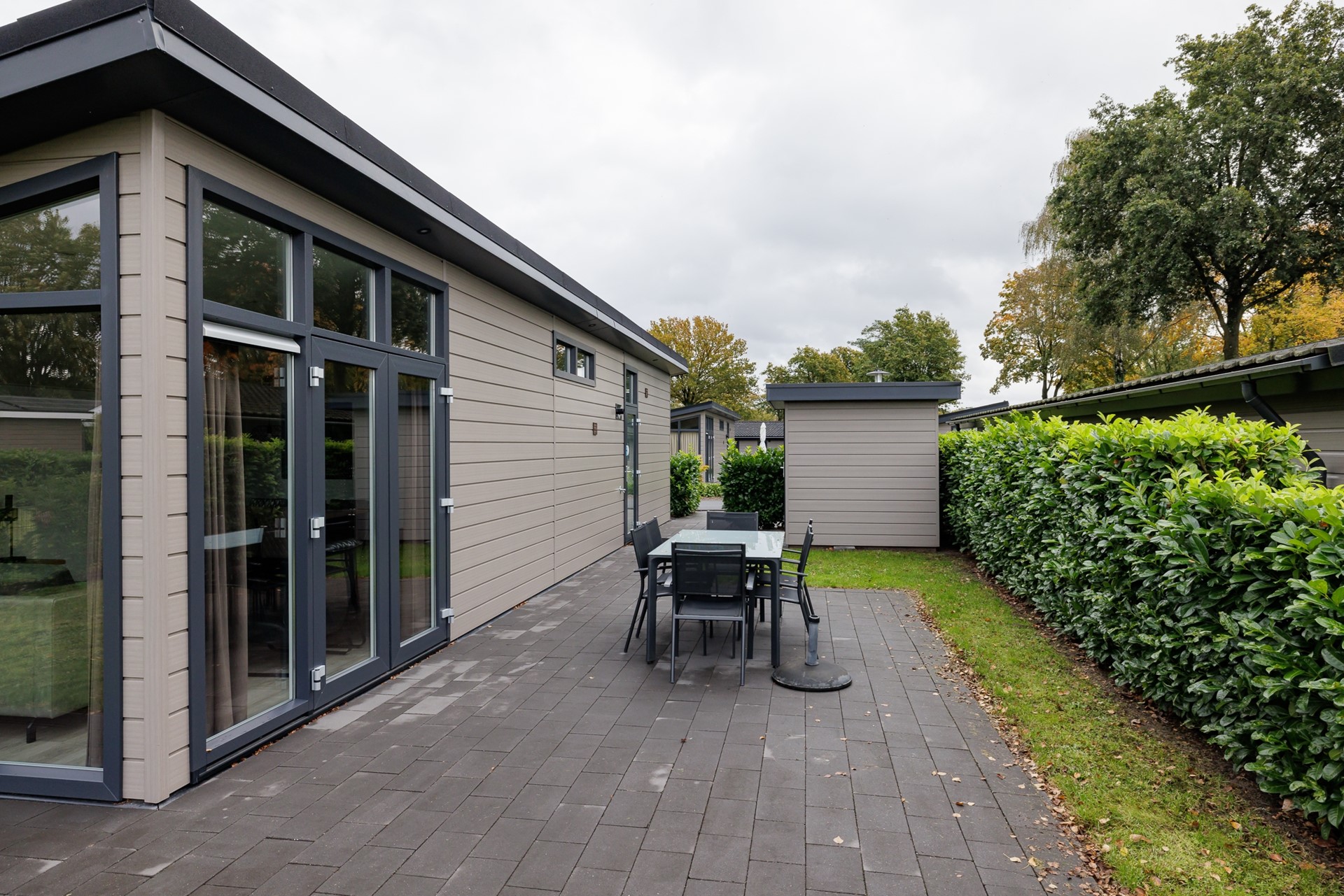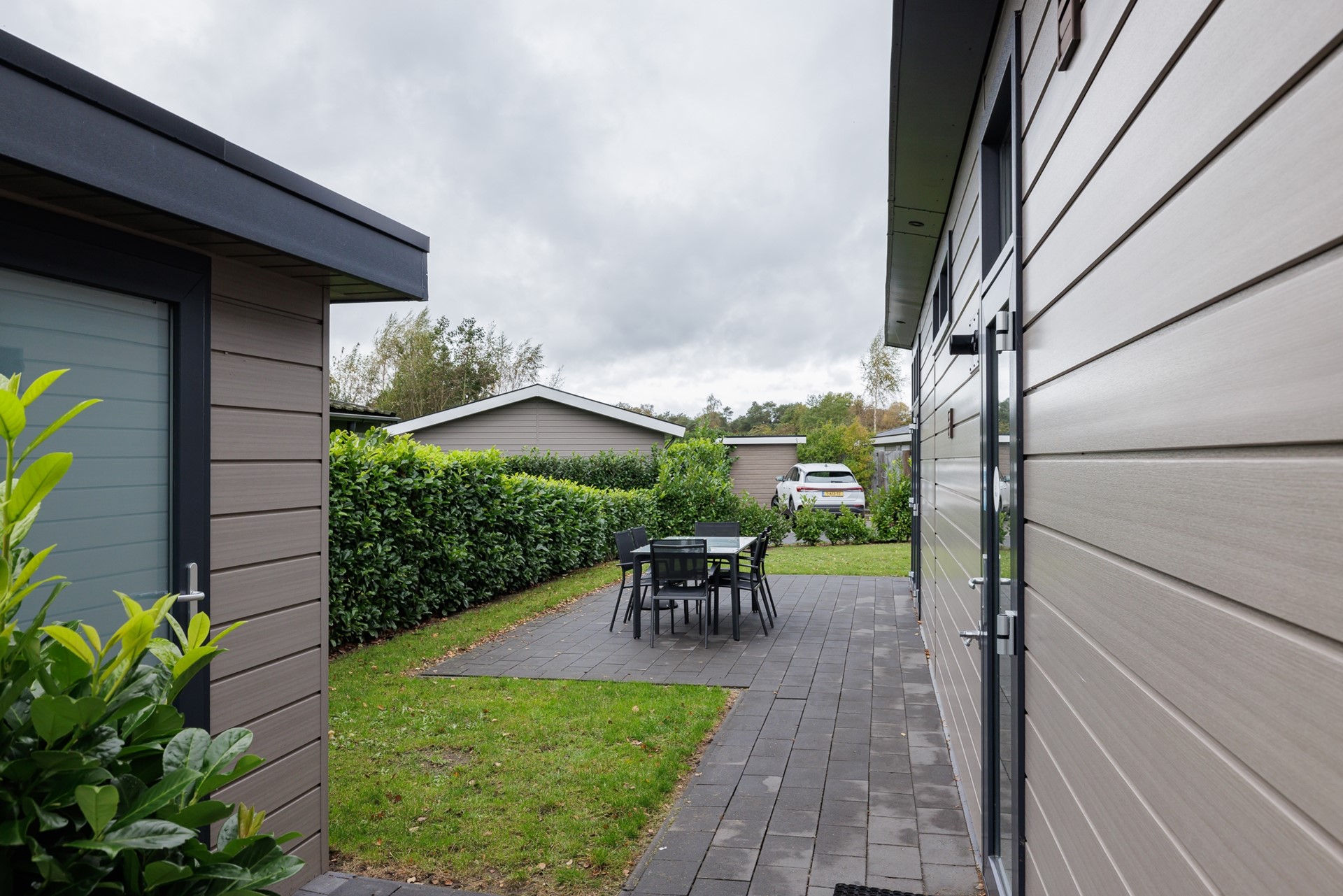 Buiten wacht een groene tuin met een aangelegd terras en een comfortabele tuinset, ideaal om te ontspannen en te genieten van het buitenleven. Naast de woning staat een praktische berging voor bijvoorbeeld fietsen, compleet met aansluiting voor de wasmachine. Het perceel beschikt bovendien over een eigen parkeerplaats.