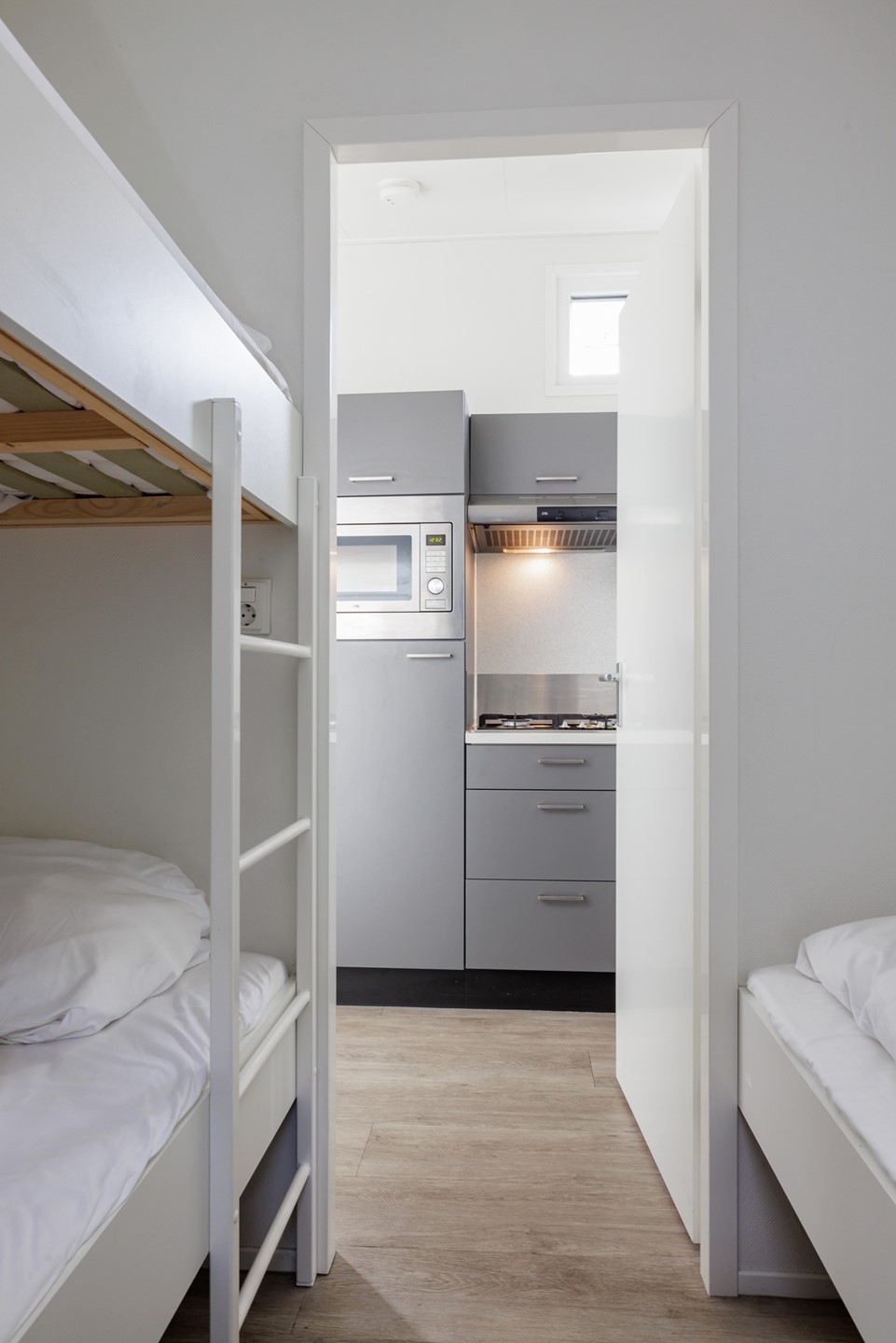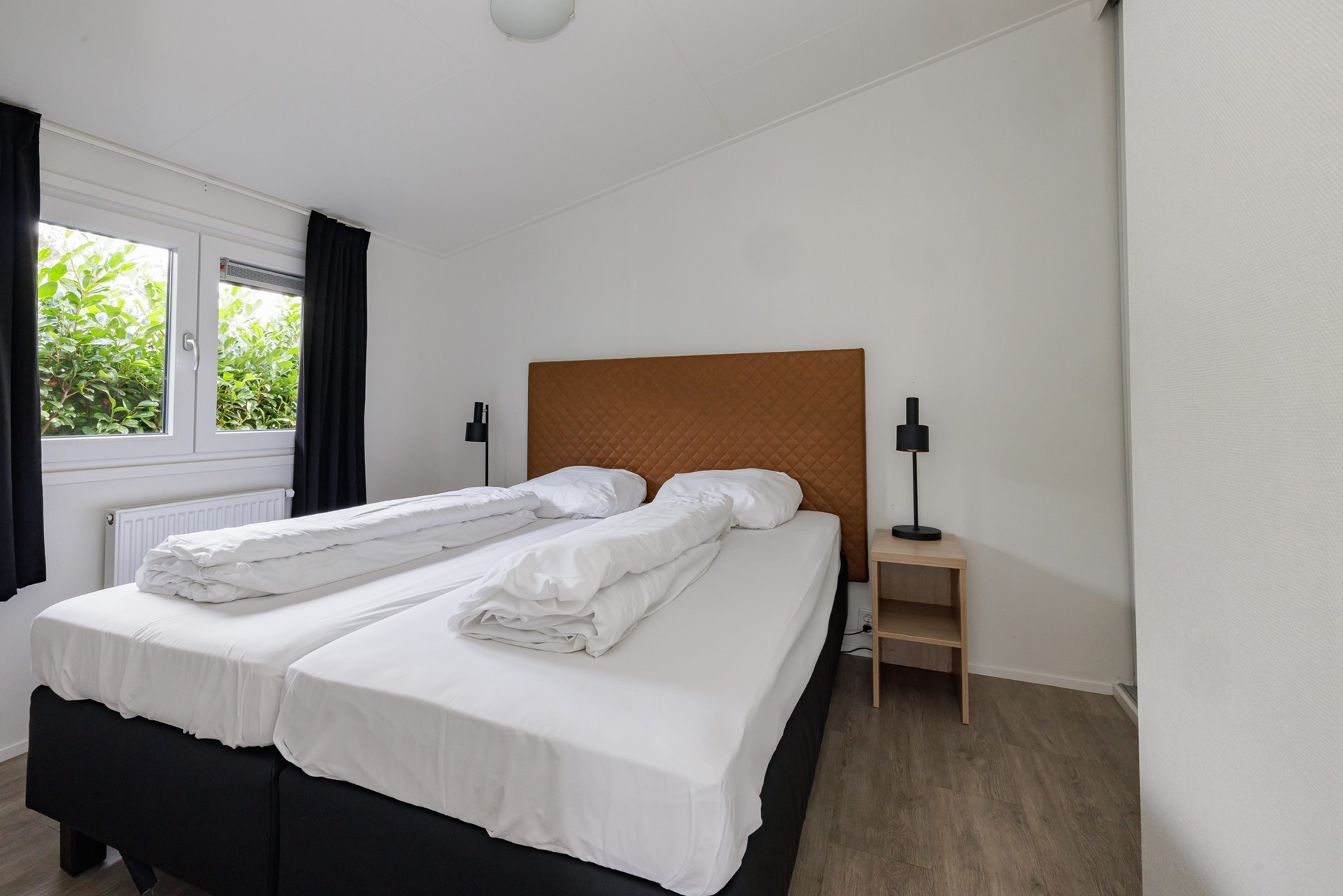 De woning beschikt over twee slaapkamers, geschikt voor maximaal vijf personen. Beide slaapkamers hebben voldoende kastruimte en comfortabele bedden, waardoor iedereen fris en uitgerust aan de dag begint. Tussen de slaapkamers ligt de volledig betegelde badkamer met een ruim wastafelmeubel en een royale douchecabine. Het toilet is separaat.