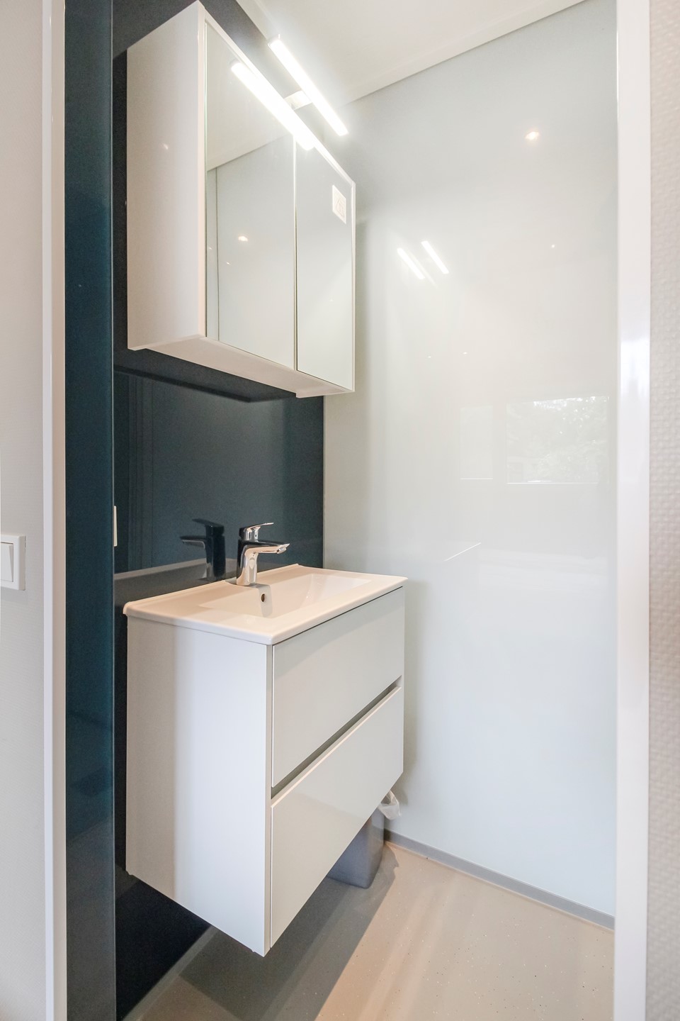 De woning beschikt over drie ruime slaapkamers, waaronder een masterbedroom met een ensuite badkamer. De masterbadkamer is luxe afgewerkt met een royale douchecabine en een breed wastafelmeubel, wat zorgt voor ultiem comfort en privacy. De overige slaapkamers delen een luxe badkamer met zwarte hoogglans wandtegels in combinatie met witte tegels, een dubbele wasbak, royale douchecabine met glazen wand, toilet, handdoekradiator en bovenkastjes met spiegelafwerking. Hiermee is de woning perfect geschikt voor 6 personen.