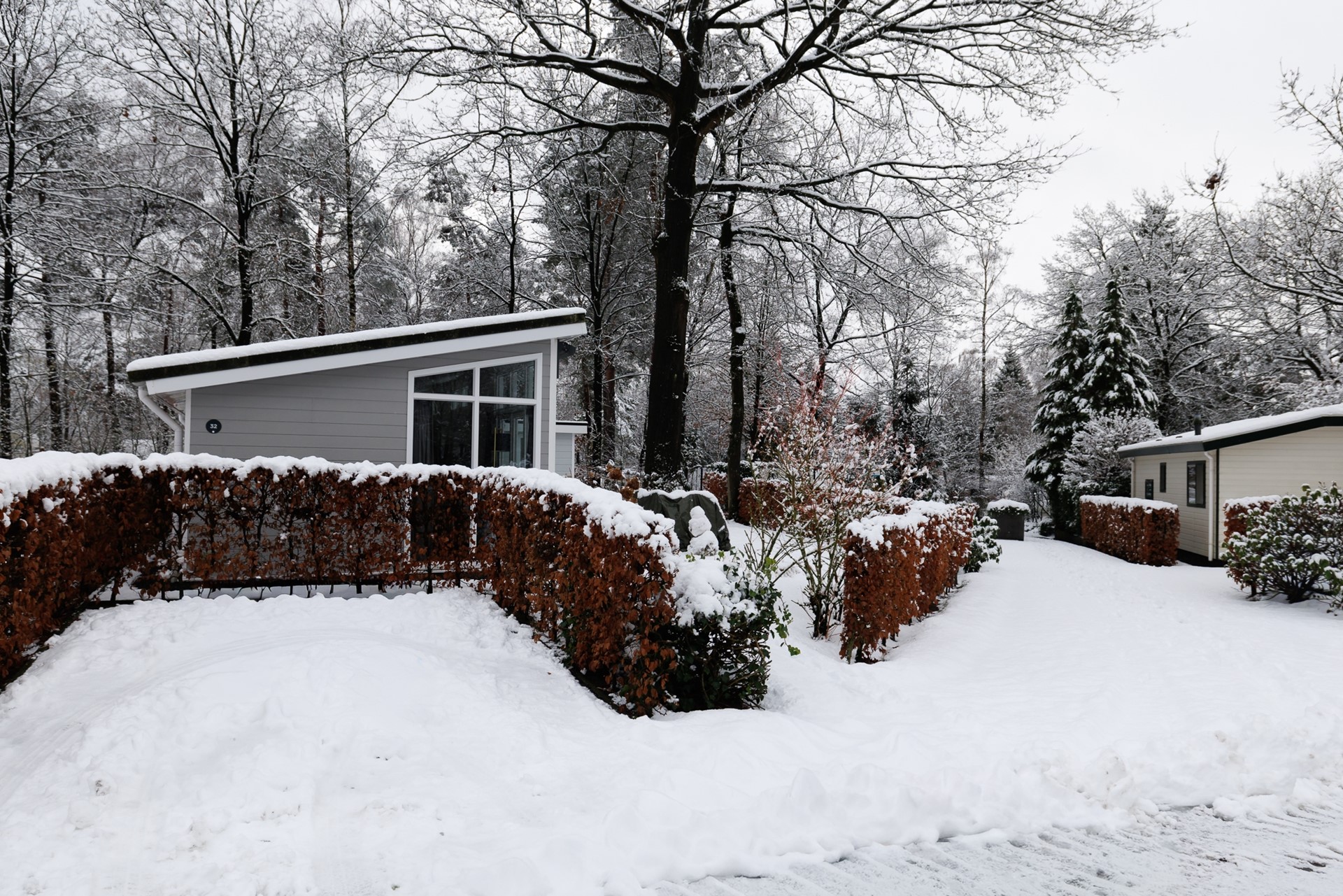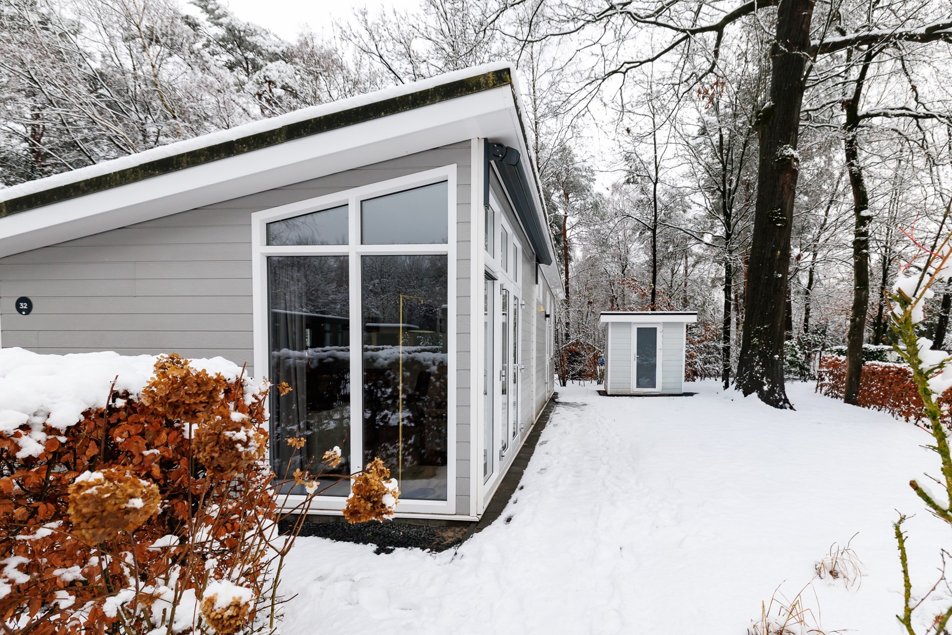 - Externe kunststof berging (ruim genoeg voor wasmachine, droger, fietsen, tuinspullen en meer)