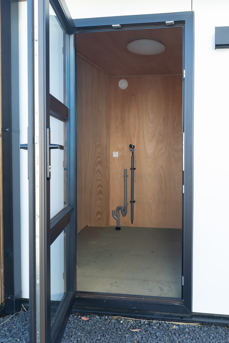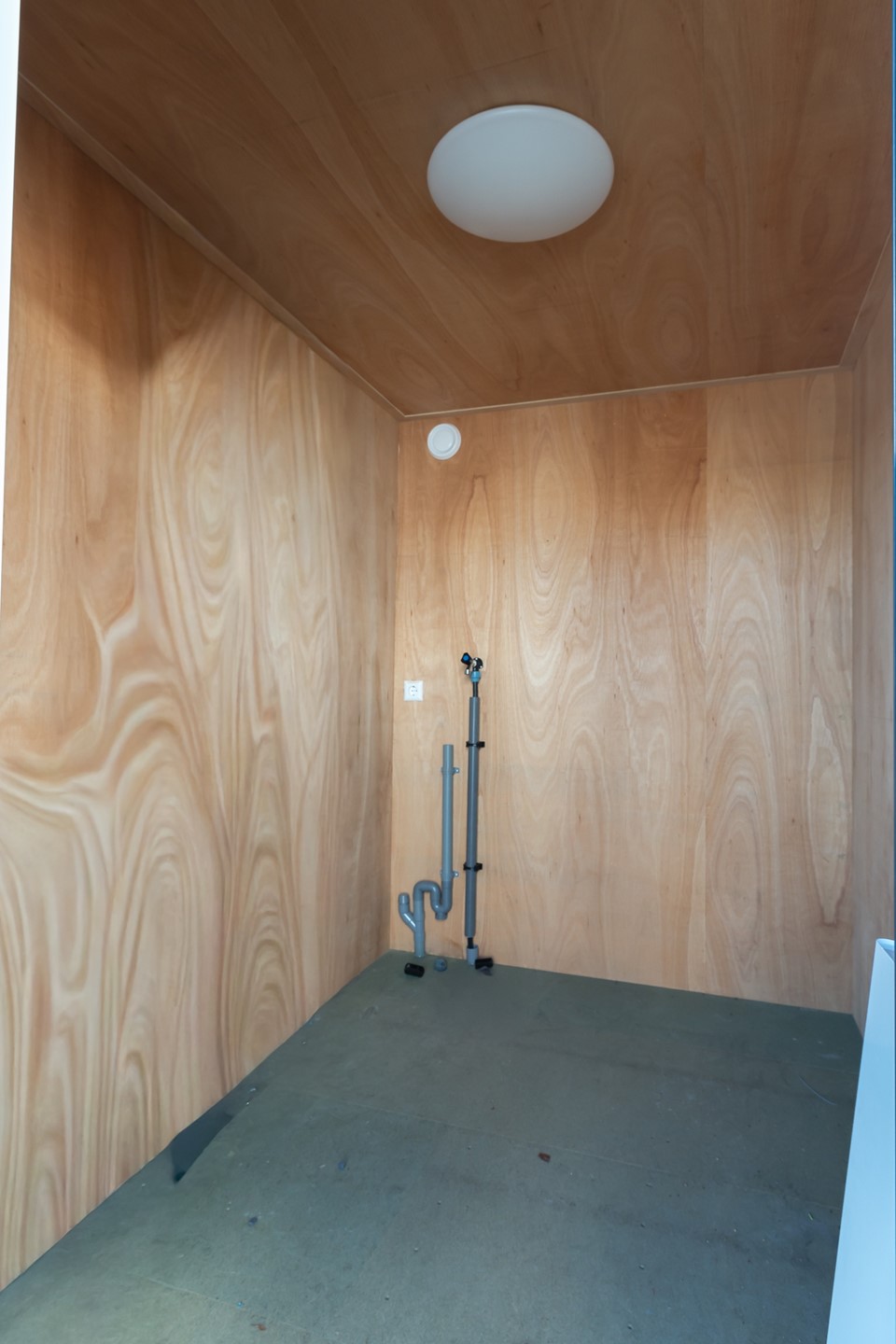 • berging van circa 4 m² met elektra en aansluiting voor wasmachine/droger