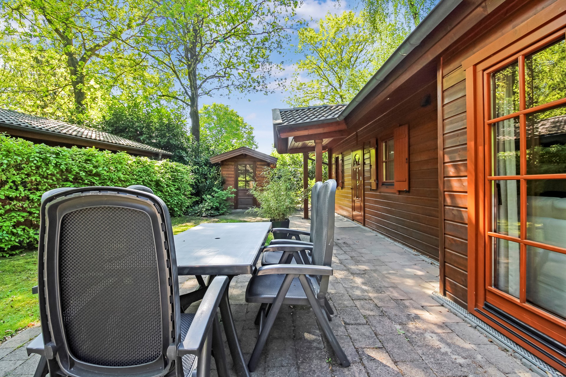 Stap naar buiten en ontdek de ruime tuin die Blokhut 213 omringt. Hier kunt u ontspannen op de luxe tuinset en genieten van de natuur om u heen. Het grote terras biedt de perfecte plek voor lange avonden in de buitenlucht, of het nu gaat om een ontspannen ontbijt of een gezellige barbecue met vrienden en familie. Met 305 m² perceel is er ruimte genoeg!