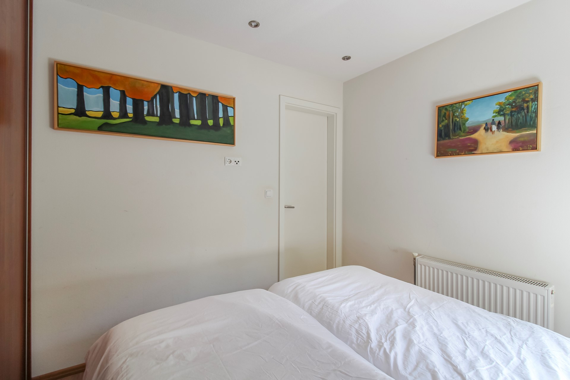 Met twee slaapkamers biedt deze knusse accommodatie plaats aan maximaal 5 personen. De masterbedroom beschikt over een ruim tweepersoonsbed en een praktische kledingkast. De tweede slaapkamer is slim ingericht met twee losse bedden en een verhoogd bed, ideaal voor zowel volwassenen als kinderen. Ook hier is voldoende opbergruimte aanwezig.