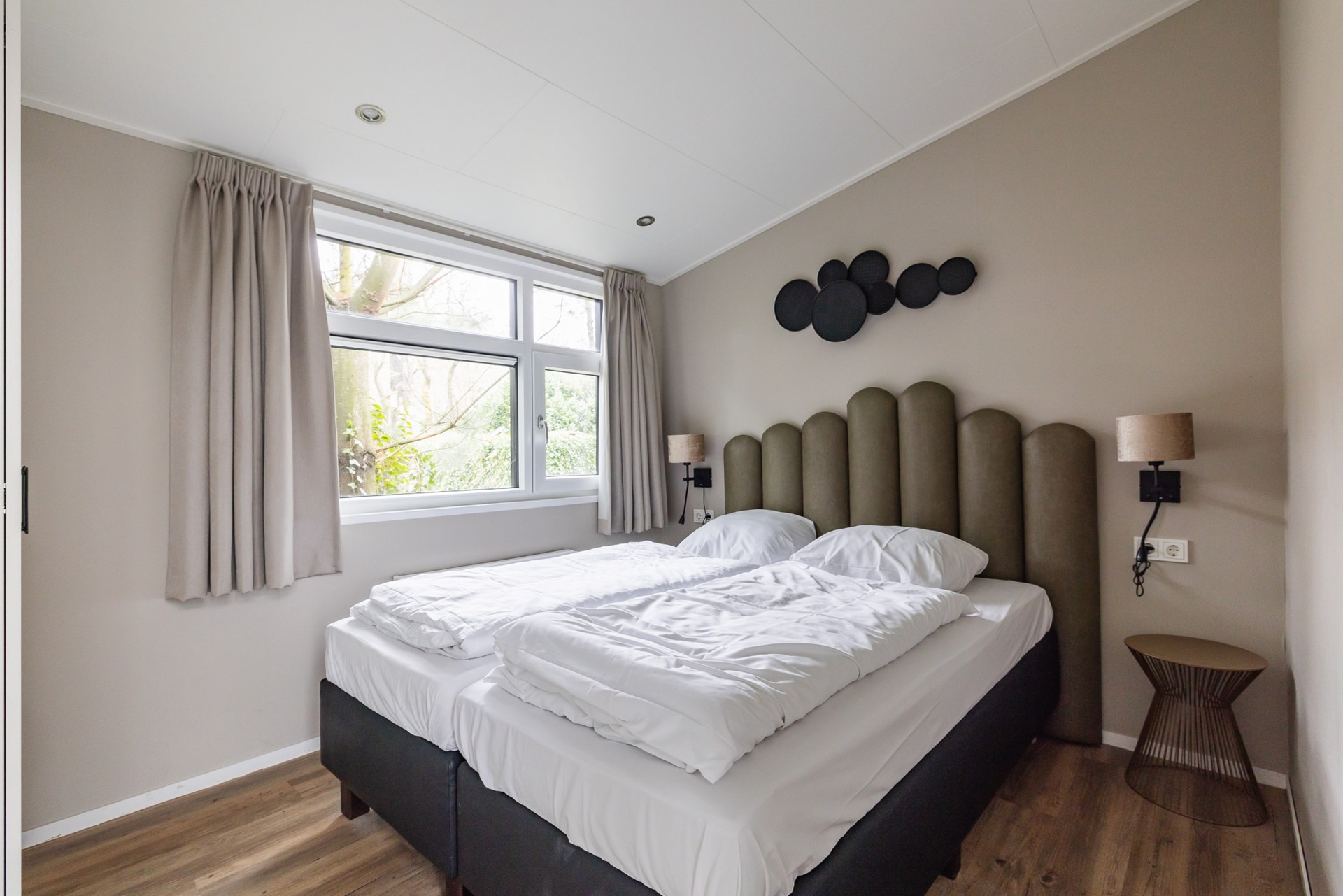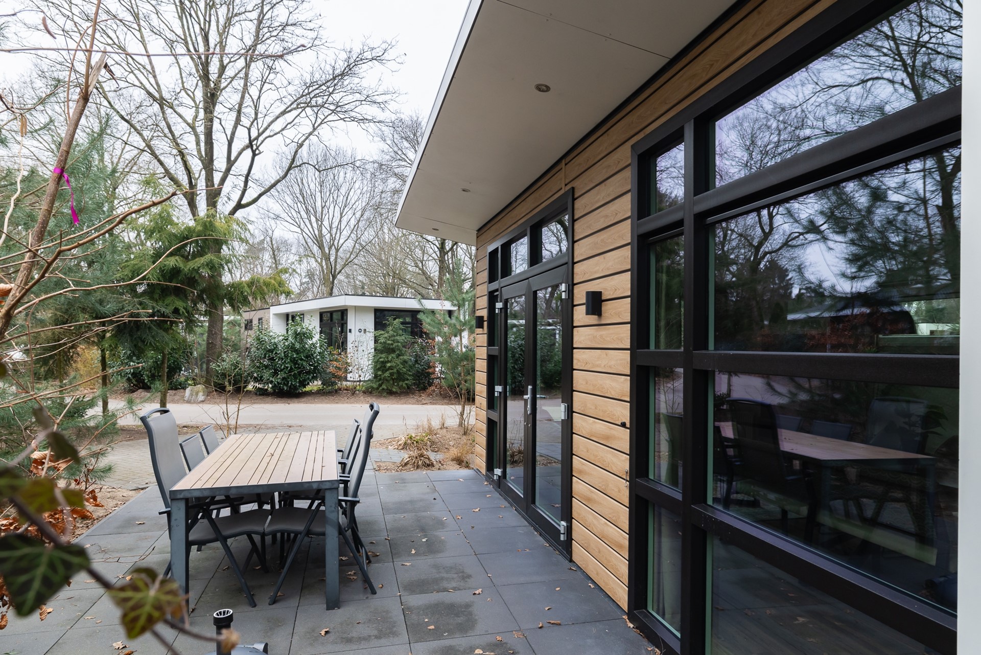 Een van de grootste pluspunten is de eigen wellness in de tuin: een royale houten sauna, buitendouche en een luxe jacuzzi op het betegelde terras. De tuin is omsloten met groen, wat zorgt voor maximale privacy en een ontspannen sfeer. U zit hier heerlijk beschut tussen de bomen, op een rustige plek in het park.