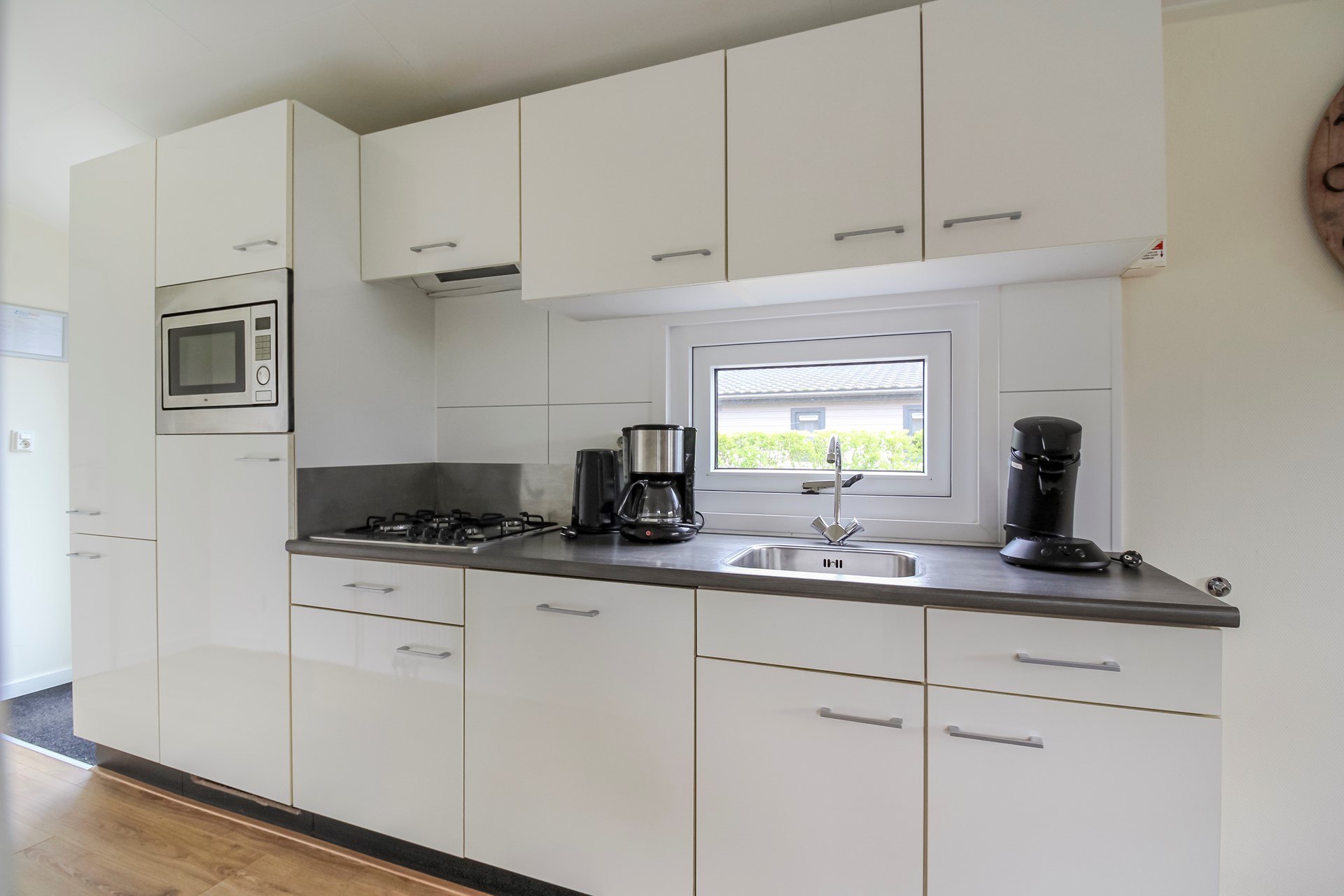De open keuken vormt een sfeervol middelpunt van de woning en is uitgerust met moderne inbouwapparatuur zoals een vaatwasser, combimagnetron en koelkast. Of u nu een snelle lunch maakt of uitgebreid kookt – hier kan het allemaal.