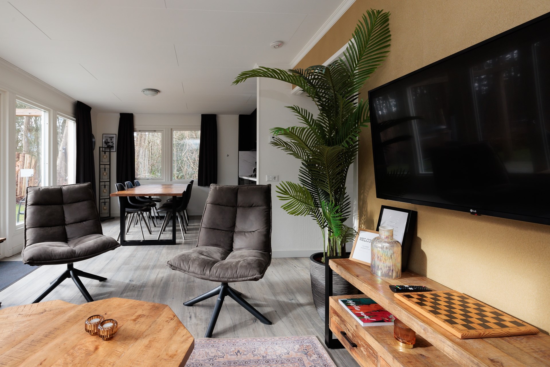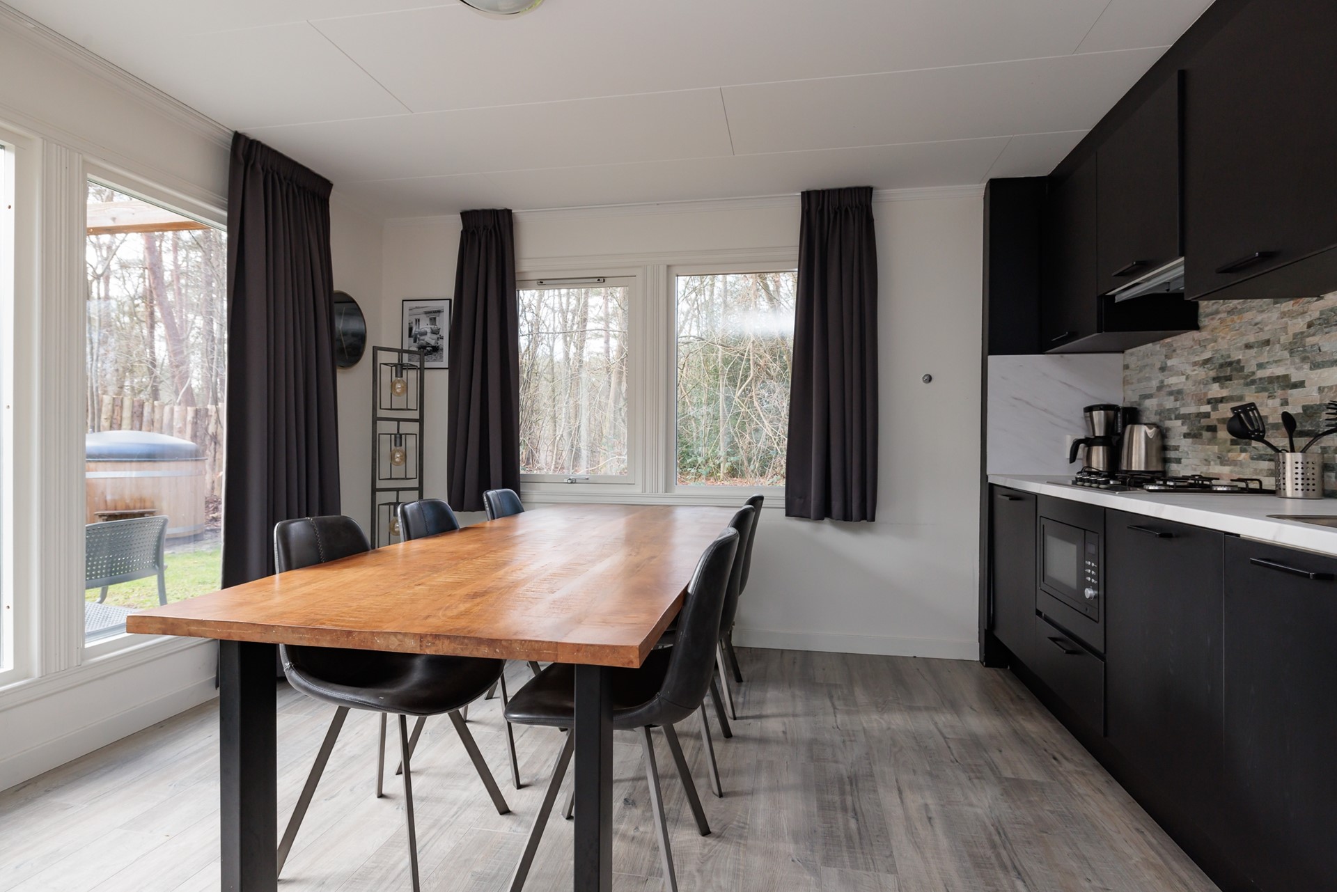 Met drie volwaardige slaapkamers biedt het chalet ruimte aan zes personen, zonder in te leveren op comfort. Alles is verzorgd en instapklaar, waardoor u de woning direct kunt gebruiken voor eigen verblijf of verhuur. Ook buiten zet de beleving zich moeiteloos voort. De tuin ligt vrij en beschut, omringd door groen en met volop privacy. Hier begint de dag met een kop koffie in de ochtendzon en eindigt deze in alle rust onder de pergola of in de warme jacuzzi, midden in de natuur. De buitendouche maakt het gevoel van vrijheid en luxe compleet.