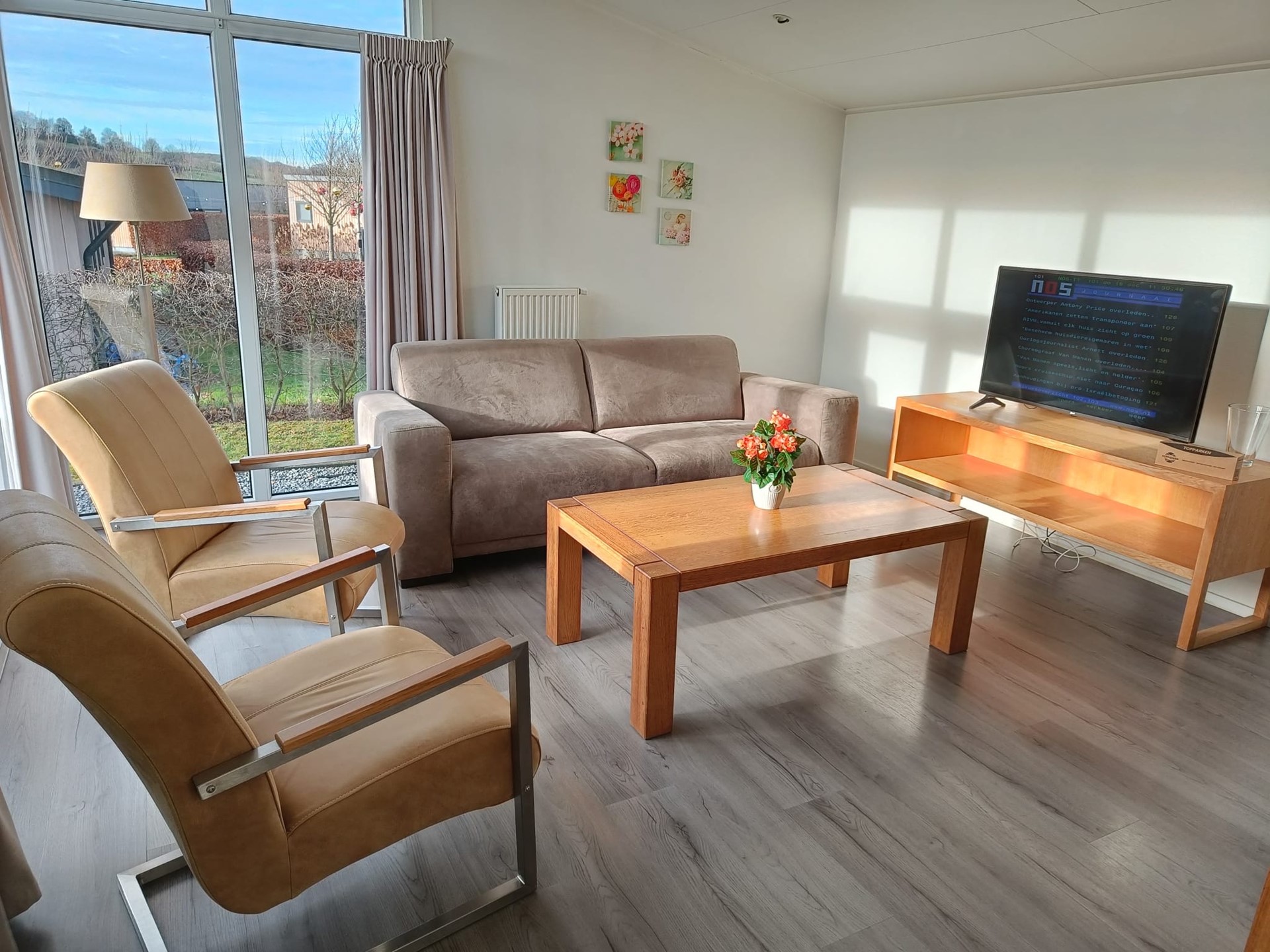 Buiten vindt u een ruim perceel met betegeld terras en een eigen parkeerplaats. Alles binnen handbereik voor optimaal vakantieplezier.