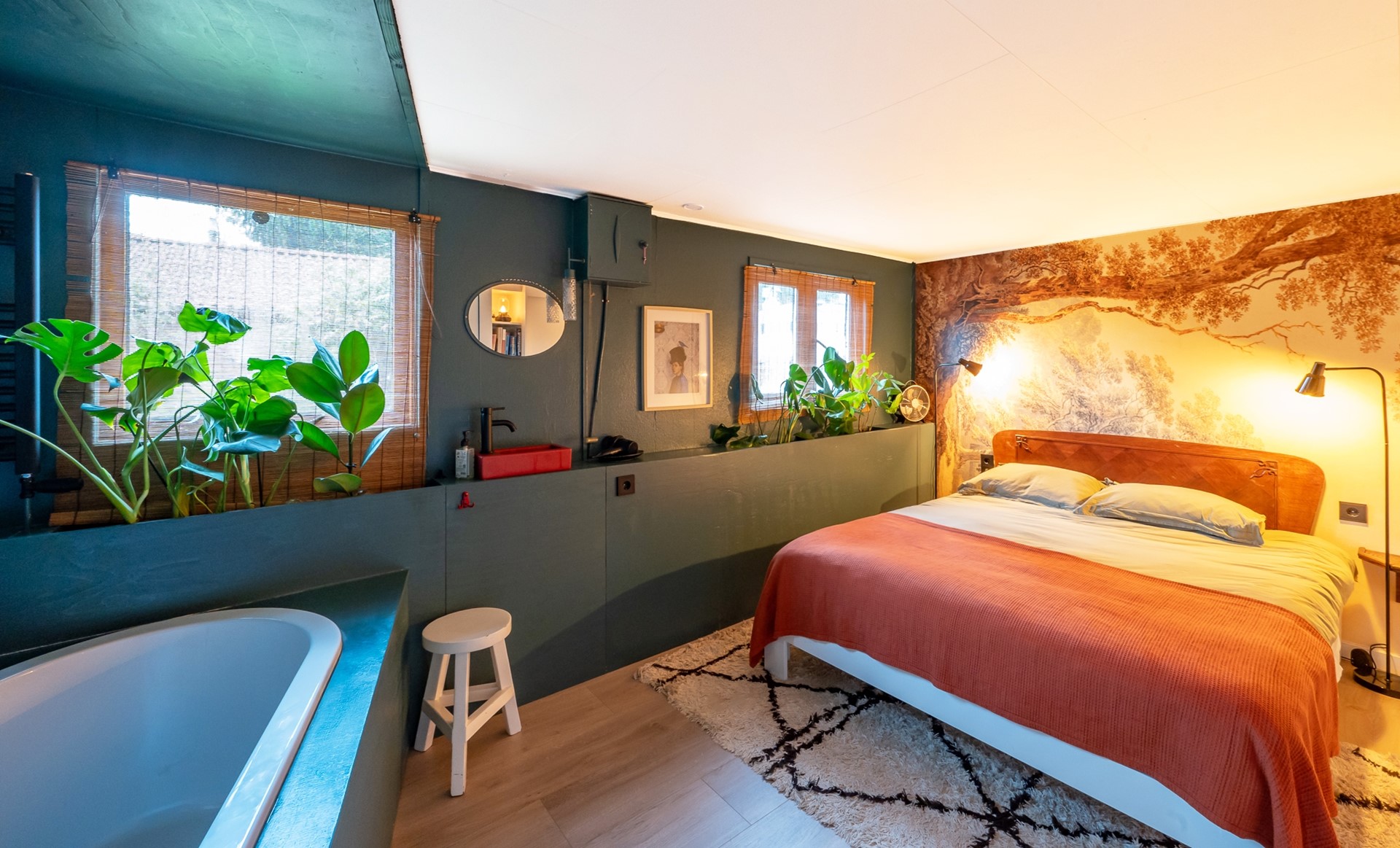 - Master bedroom met vrijstaand bad, zachte stoffen en kunstzinnige details