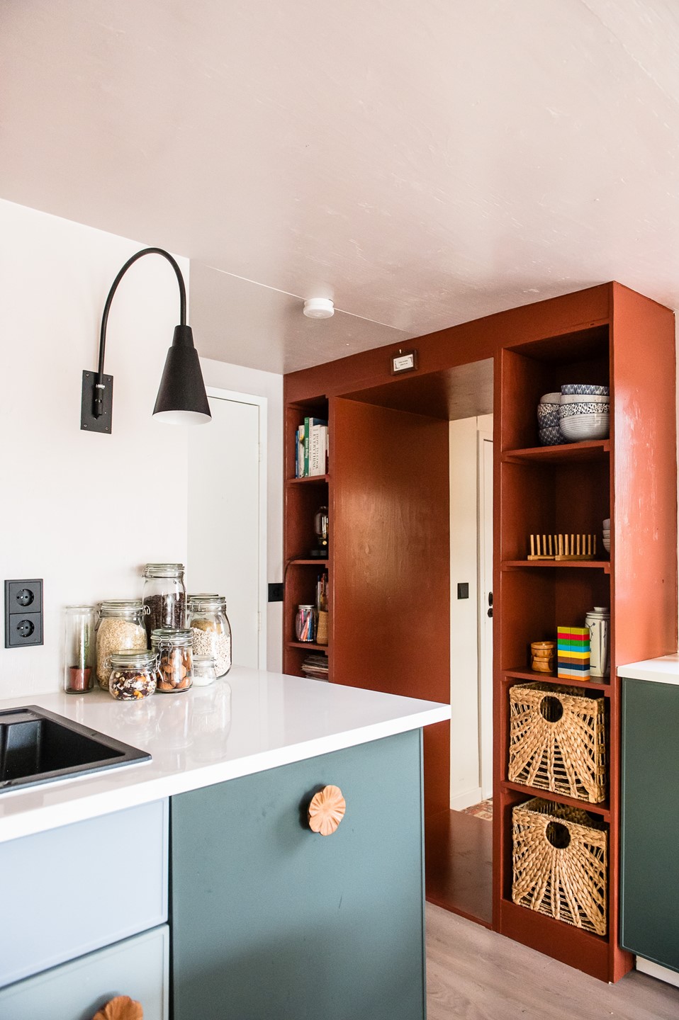 - Open keuken in zachte kleurstelling met moderne apparatuur