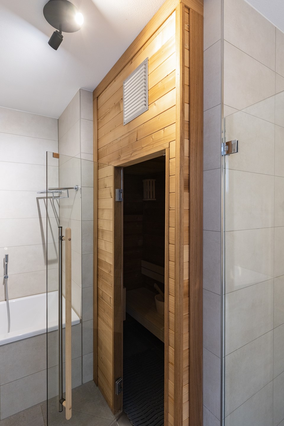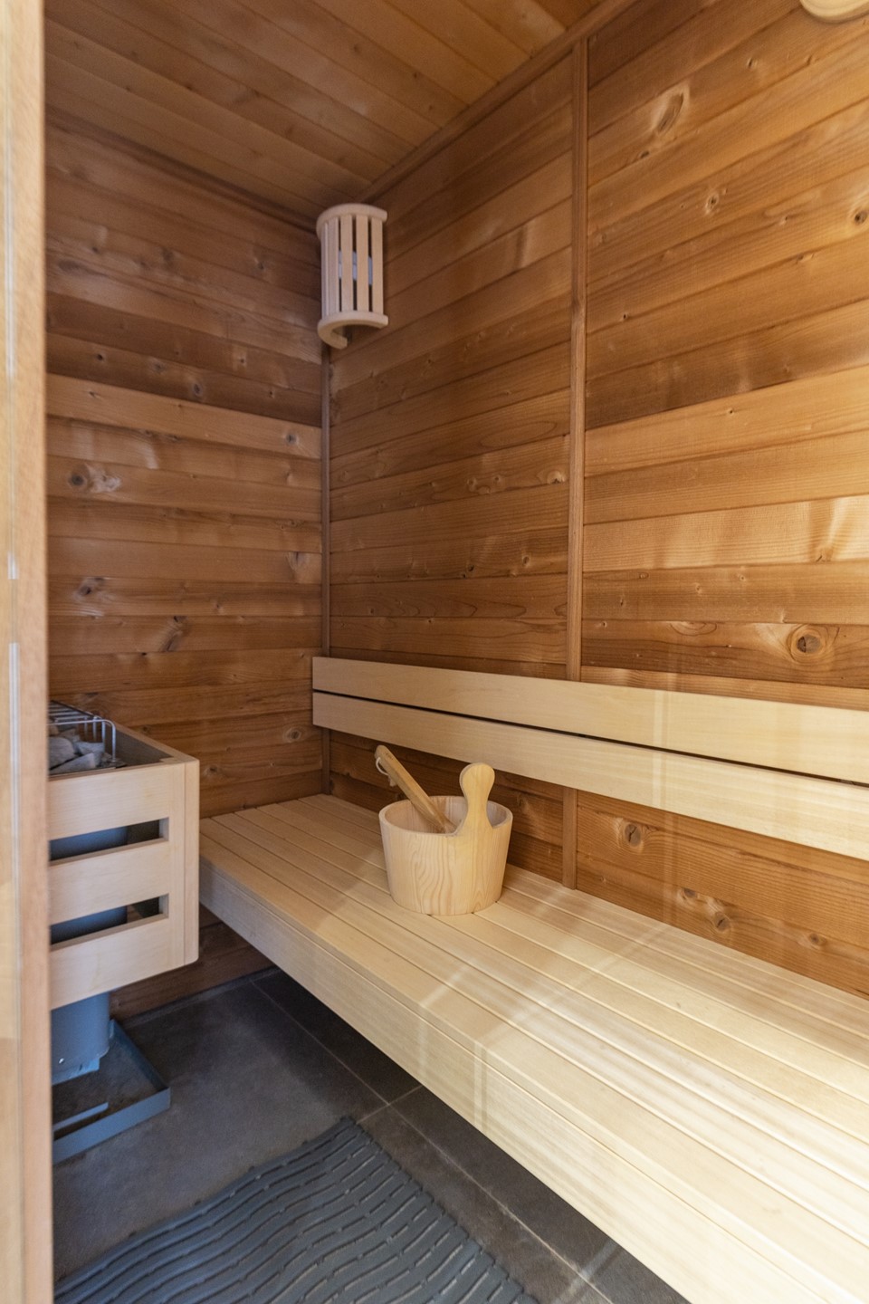 Wanneer u binnenstapt, voelt u het direct: dit is niet zomaar een plek om te overnachten. Alles ademt luxe en frisheid. Het interieur is splinternieuw, licht en uitnodigend, met moderne meubels en fijne details. Hier draait alles om ontspanning, gemak en sfeer. De woonkamer nodigt uit tot lekker lang tafelen of loungen na een actieve dag buiten. De keuken is volledig uitgerust, dus geen enkel excuus om niet zelf eens een lekkere maaltijd in elkaar te draaien of gewoon een verse cappuccino te zetten voor u op het terras ploft. En als kers op de taart vindt u in de badkamer een sauna. Komt u net terug van een frisse duik of lange wandeltocht, dan kunt u daarna hier heerlijk ontspannen.